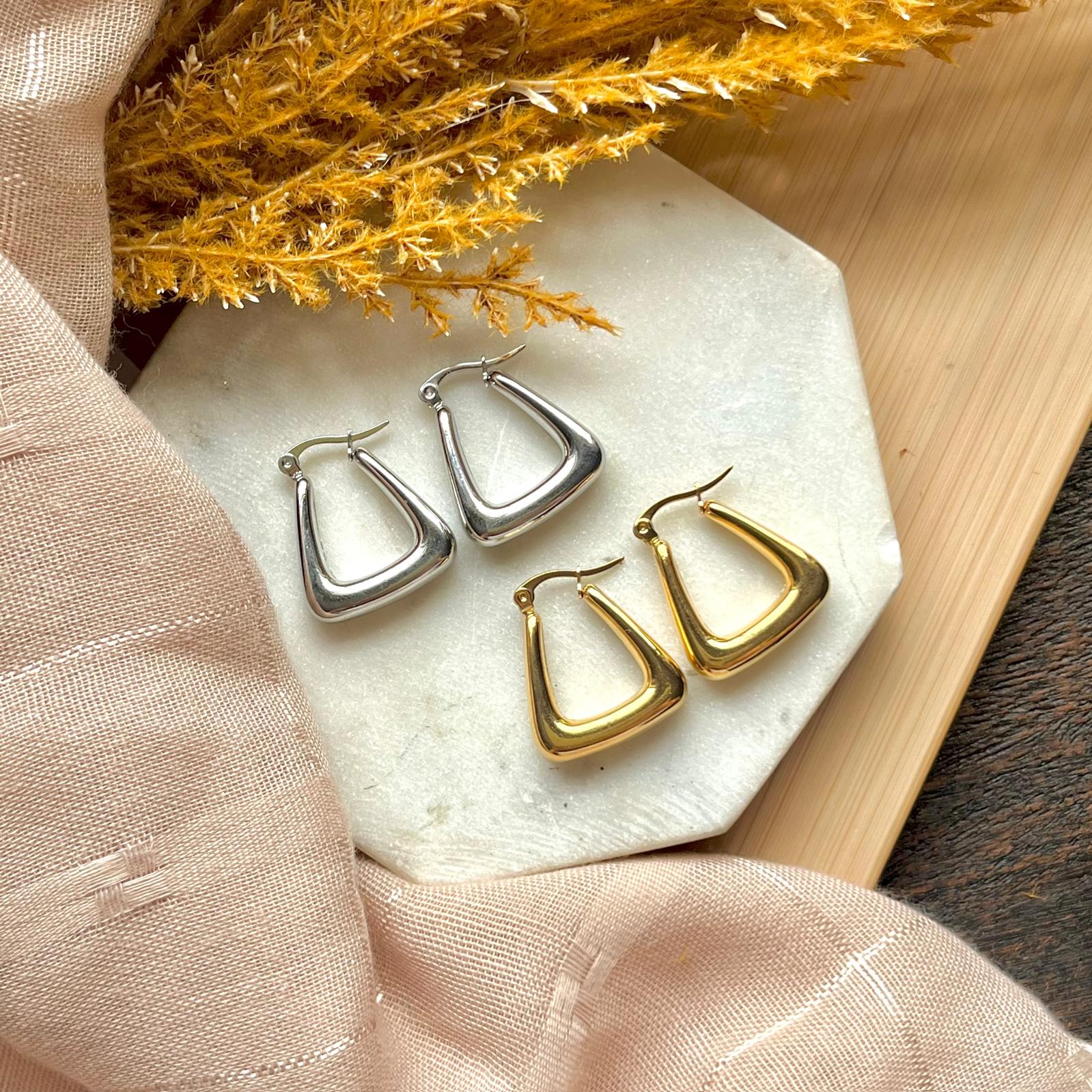 Eleva tu outfit con estas pantallas triangulares que combinan una construcción ligera con una elegancia sencilla. Su diseño único y minimalista las convierte en un añadido llamativo pero sutil, perfecto para realzar outfit. Experimenta la armonía entre la forma y la función en una pieza que es tan elegante como sencillamente refinada.